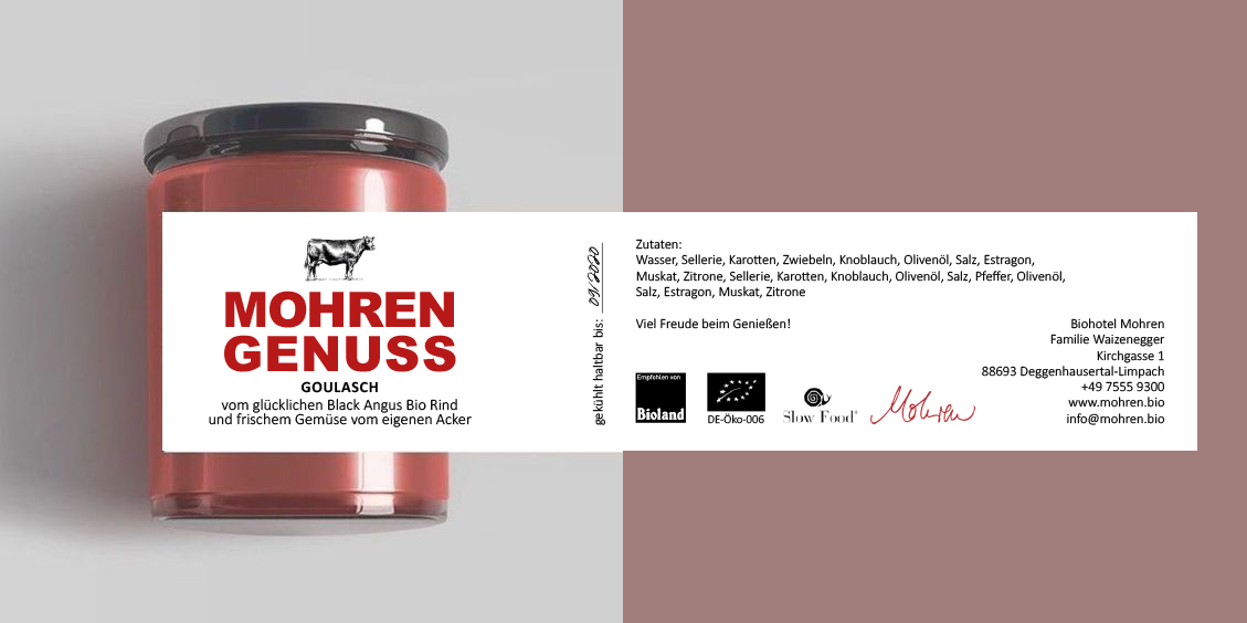 Hier gestaltete ich Glas-Etiketten für unsere hauseigene Produkte. Wichtig dabei war, dass die beliebig reproduzierbar und universell anwendbar sind. Dank des speziell angeschafften Etikettendrucker finden sie täglich Anwendung auf Gläsern von beispielsweise Salatsaucen, Suppen oder eigenem Siedfleisch.